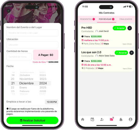 Como DJ recibirás la solicitud del nuevo contrato en tiempo real y podrás aceptarla o cancelarla dependiendo de la disposición que tengas en tu agenda.